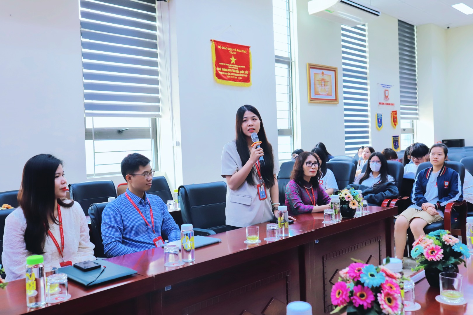 Trong không khí thân tình của buổi trò chuyện, Phó Giáo sư Tiến sĩ Phạm Đức Hiệp, Bí thư Chi bộ, Hiệu trưởng Nhà trường đã thay mặt tập thể lãnh đạo và cán bộ giáo viên gửi lời chúc mừng nồng nhiệt nhất đến Hà Linh. Thầy Hiệu trưởng đánh giá rất cao sự nỗ lực bền bỉ và bản lĩnh sân khấu xuất sắc mà em đã thể hiện trong suốt hành trình chinh phục vương miện. Thầy cũng nhấn mạnh rằng thành tích vinh quang của em không chỉ là một dấu ấn cá nhân rực rỡ mà còn là minh chứng sống động nhất cho tinh thần năng động, dám nghĩ dám làm và bản lĩnh vững vàng của thế hệ học sinh Trường THPT Khoa học Giáo dục. Sự thành công của Hà Linh chính là nguồn cảm hứng to lớn, tiếp thêm động lực để các em học sinh khóa sau mạnh dạn theo đuổi đam mê.