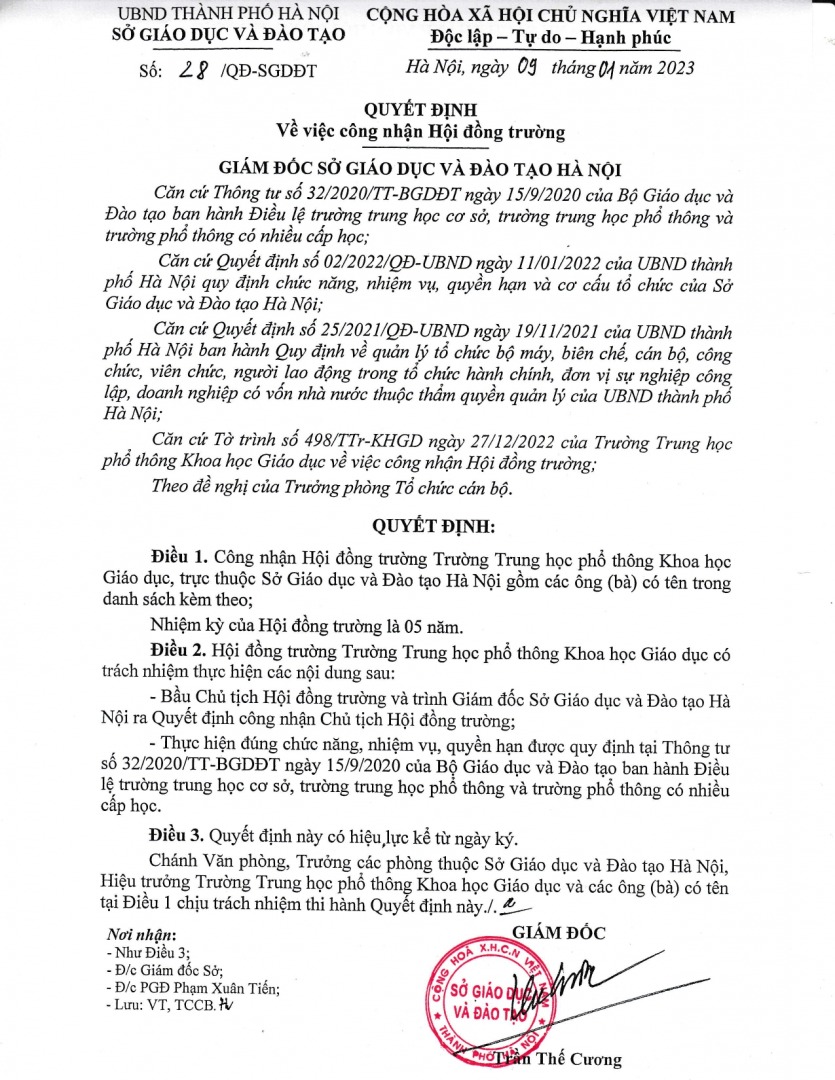 Quyết định về việc công nhận Hội đồng trường:
