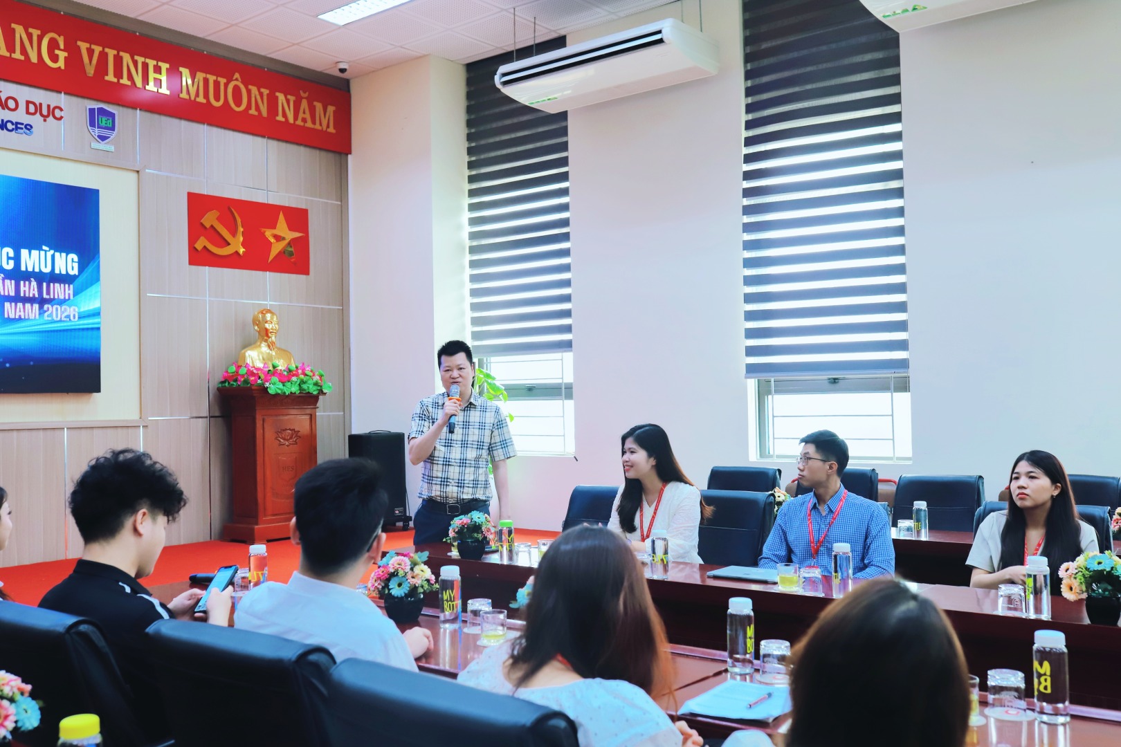 Trong không khí thân tình của buổi trò chuyện, Phó Giáo sư Tiến sĩ Phạm Đức Hiệp, Bí thư Chi bộ, Hiệu trưởng Nhà trường đã thay mặt tập thể lãnh đạo và cán bộ giáo viên gửi lời chúc mừng nồng nhiệt nhất đến Hà Linh. Thầy Hiệu trưởng đánh giá rất cao sự nỗ lực bền bỉ và bản lĩnh sân khấu xuất sắc mà em đã thể hiện trong suốt hành trình chinh phục vương miện. Thầy cũng nhấn mạnh rằng thành tích vinh quang của em không chỉ là một dấu ấn cá nhân rực rỡ mà còn là minh chứng sống động nhất cho tinh thần năng động, dám nghĩ dám làm và bản lĩnh vững vàng của thế hệ học sinh Trường THPT Khoa học Giáo dục. Sự thành công của Hà Linh chính là nguồn cảm hứng to lớn, tiếp thêm động lực để các em học sinh khóa sau mạnh dạn theo đuổi đam mê.